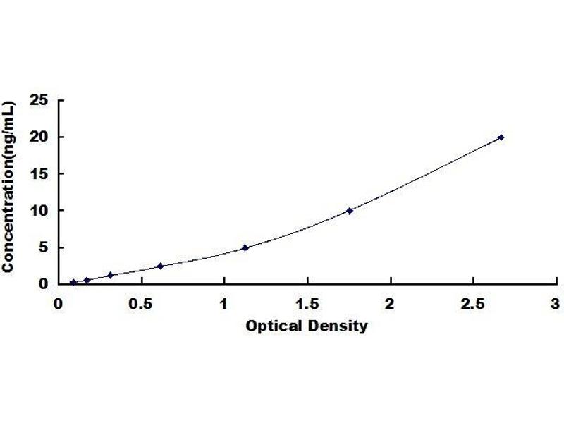 - Standard - Reconstitute the Standard with 1.0 mL of Standard Diluent, keep for 10 minutes at room temperature, shake gently (not to foam). The concentration of the standard in the stock solution is 100 ng/mL. Firstly dilute the stock solution to 20 ng/mL and the diluted standard serves as the highest standard (20 ng/mL). Then prepare 7 tubes containing 0.5 mL Standard Diluent and use the diluted standard to produce a double dilution series. Mix each tube thoroughly before the next transfer. Set up 7 points of diluted standard such as 20 ng/mL, 10 ng/mL, 5 ng/mL, 2.5 ng/mL, 1.25 ng/mL, 0.625 ng/mL, 0.312 ng/mL, and the last microcentrifuge tube with Standard Diluent is the blank as 0 ng/mL.