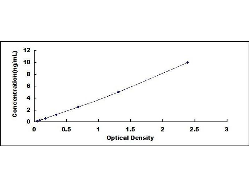 - Standard - Reconstitute the Standard with 1.0mL of Standard Diluent, kept for 10 minutes at room temperature, shake gently (not to foam). The concentration of the standard in the stock solution is 20ng/mL. First dilute the stock solution to 10ng/mL and the diluted standard serves as the highest standard (10ng/mL). Prepare 7 tubes containing 0.5mL Standard Diluent and use the diluted standard to produce a double dilution series. Mix each tube thoroughly before the next transfer. Set up 7 points of diluted standard such as 10 ng/mL, 5 ng/mL, 2.5 ng/mL, 1.25 ng/mL, 0.625 ng/mL, 0.312 ng/mL, 0.156 ng/mL, and the last microcentrifuge tube with Standard Diluent is the blank as 0 ng/mL.