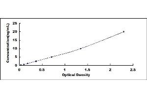 2. Standard - Reconstitute the Standard with 1.0 mL of Standard Diluent, keep for 10 minutes at room temperature, shake gently (not to foam). The concentration of the standard in the stock solution is 80 ng/mL. Firstly dilute the stock solution to 20 ng/mL and the diluted standard serves as the highest standard (20 ng/mL). Then prepare 7 tubes containing 0.5 mL Standard Diluent and use the diluted standard to produce a double dilution series. Mix each tube thoroughly before the next transfer. Set up 7 points of diluted standard such as 20 ng/mL, 10 ng/mL, 5 ng/mL, 2.5 ng/mL, 1.25 ng/mL, 0.625 ng/mL, 0.312 ng/mL, and the last microcentrifuge tube with Standard Diluent is the blank as 0 ng/mL.