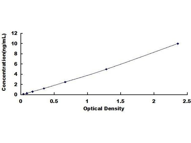 2. Standard - Reconstitute the Standard with 1.0 mL of Standard Diluent, keep for 10 minutes at room temperature, shake gently (not to foam). The concentration of the standard in the stock solution is 20 ng/mL. Firstly dilute the stock solution to 10 ng/mL and the diluted standard serves as the highest standard (10 ng/mL). Then prepare 7 tubes containing 0.5 mL Standard Diluent and use the diluted standard to produce a double dilution series. Mix each tube thoroughly before the next transfer. Set up 7 points of diluted standard such as 10 ng/mL, 5 ng/mL, 2.5 ng/mL, 1.25 ng/mL, 0.625 ng/mL, 0.312 ng/mL, 0.156 ng/mL, and the last microcentrifuge tube with Standard Diluent is the blank as 0 ng/mL.