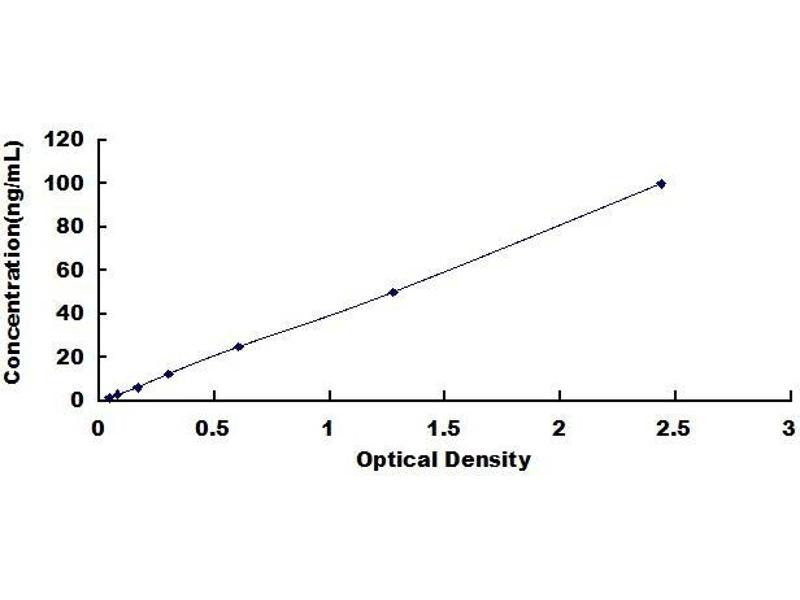 - Standard - Reconstitute the Standard with 1.0 mL of Standard Diluent, keep for 10 minutes at room temperature, shake gently (not to foam). The concentration of the standard in the stock solution is 200 ng/mL. Firstly dilute the stock solution to 100 ng/mL and the diluted standard serves as the highest standard (100 ng/mL). Then prepare 7 tubes containing 0.5 mL Standard Diluent and use the diluted standard to produce a double dilution series. Mix each tube thoroughly before the next transfer. Set up 7 points of diluted standard such as 100 ng/mL, 50 ng/mL, 25 ng/mL, 12.5 ng/mL, 6.25 ng/mL, 3.12 ng/mL, 1.56 ng/mL, and the last microcentrifuge tube with Standard Diluent is the blank as 0 ng/mL.