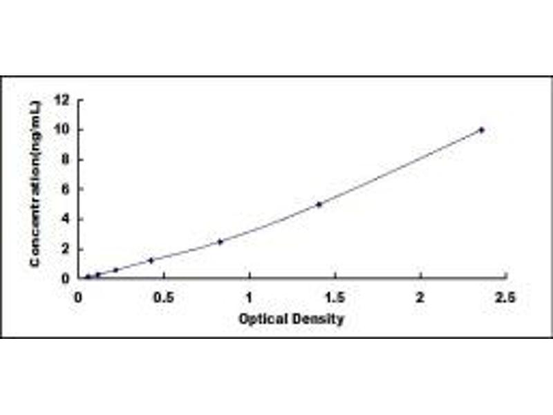 - Standard - Reconstitute the Standard with 1.0 mL of Standard Diluent, keep for 10 minutes at room temperature, shake gently (not to foam). The concentration of the standard in the stock solution is 40 ng/mL. Firstly dilute the stock solution to 10 ng/mL and the diluted standard serves as the highest standard (10 ng/mL). Then prepare 7 tubes containing 0.5 mL Standard Diluent and use the diluted standard to produce a double dilution series. Mix each tube thoroughly before the next transfer. Set up 7 points of diluted standard such as 10 ng/mL, 5 ng/mL, 2.5 ng/mL, 1.25 ng/mL, 0.625 ng/mL, 0.312 ng/mL, 0.156 ng/mL, and the last microcentrifuge tube with Standard Diluent is the blank as 0 ng/mL.