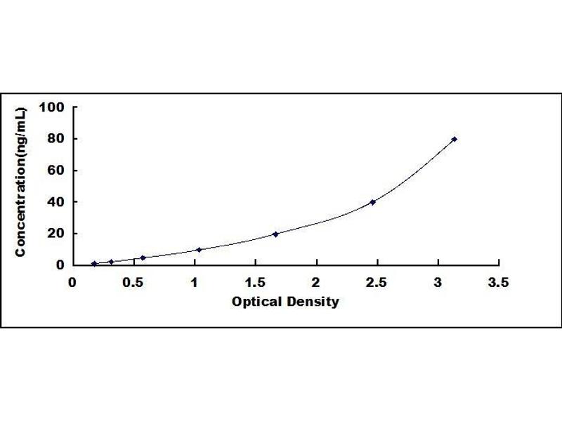 - Standard - Reconstitute the Standard with 1.0 mL of Standard Diluent, keep for 10 minutes at room temperature, shake gently (not to foam). The concentration of the standard in the stock solution is 160 ng/mL. Firstly dilute the stock solution to 80 ng/mL and the diluted standard serves as the highest standard (80 ng/mL). Then prepare 7 tubes containing 0.5 mL Standard Diluent and use the diluted standard to produce a double dilution series. Mix each tube thoroughly before the next transfer. Set up 7 points of diluted standard such as 80 ng/mL, 40 ng/mL, 20 ng/mL, 10 ng/mL, 5 ng/mL, 2.5 ng/mL, 1.25 ng/mL, and the last microcentrifuge tube with Standard Diluent is the blank as 0 ng/mL.