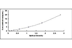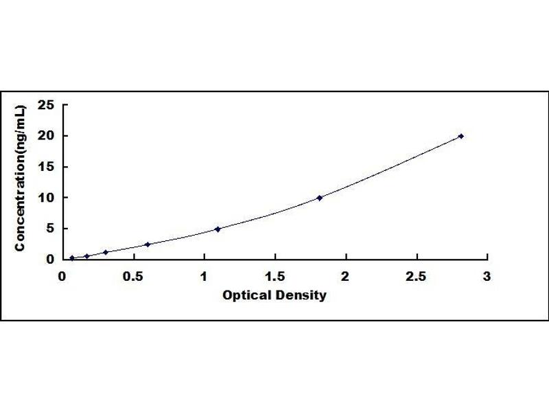 2. Standard - Reconstitute the Standard with 1.0 mL of Standard Diluent, keep for 10 minutes at room temperature, shake gently (not to foam). The concentration of the standard in the stock solution is 20 ng/mL. Prepare 7 tubes containing 0.5 mL Standard Diluent and produce a double dilution series. Mix each tube thoroughly before the next transfer. Set up 7 points of diluted standard such as 20 ng/mL, 10 ng/mL, 5 ng/mL, 2.5 ng/mL, 1.25 ng/mL, 0.625 ng/mL, 0.312 ng/mL, and the last microcentrifuge tube with Standard Diluent is the blank as 0 ng/mL.