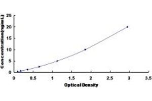 2. Standard - Reconstitute the Standard with 1.0 mL of Standard Diluent, keep for 10 minutes at room temperature, shake gently (not to foam). The concentration of the standard in the stock solution is 40 ng/mL. Firstly dilute the stock solution to 20 ng/mL and the diluted standard serves as the highest standard (20 ng/mL). Then prepare 7 tubes containing 0.5 mL Standard Diluent and use the diluted standard to produce a double dilution series. Mix each tube thoroughly before the next transfer. Set up 7 points of diluted standard such as 20 ng/mL, 10 ng/mL, 5 ng/mL, 2.5 ng/mL, 1.25 ng/mL, 0.625 ng/mL, 0.312 ng/mL, and the last microcentrifuge tube with Standard Diluent is the blank as 0 ng/mL.