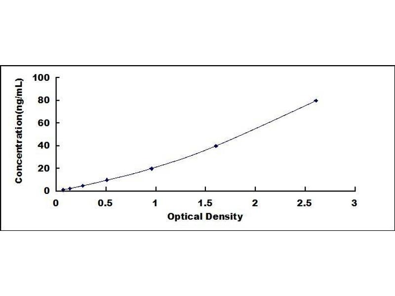 - Standard - Reconstitute the Standard with 1.0 mL of Standard Diluent, keep for 10 minutes at room temperature, shake gently (not to foam). The concentration of the standard in the stock solution is 160 ng/mL. Firstly dilute the stock solution to 80 ng/mL and the diluted standard serves as the highest standard (80 ng/mL). Then prepare 7 tubes containing 0.5 mL Standard Diluent and use the diluted standard to produce a double dilution series. Mix each tube thoroughly before the next transfer. Set up 7 points of diluted standard such as 80 ng/mL, 40 ng/mL, 20 ng/mL, 10 ng/mL, 5 ng/mL, 2.5 ng/mL, 1.25 ng/mL, and the last microcentrifuge tube with Standard Diluent is the blank as 0 ng/mL.