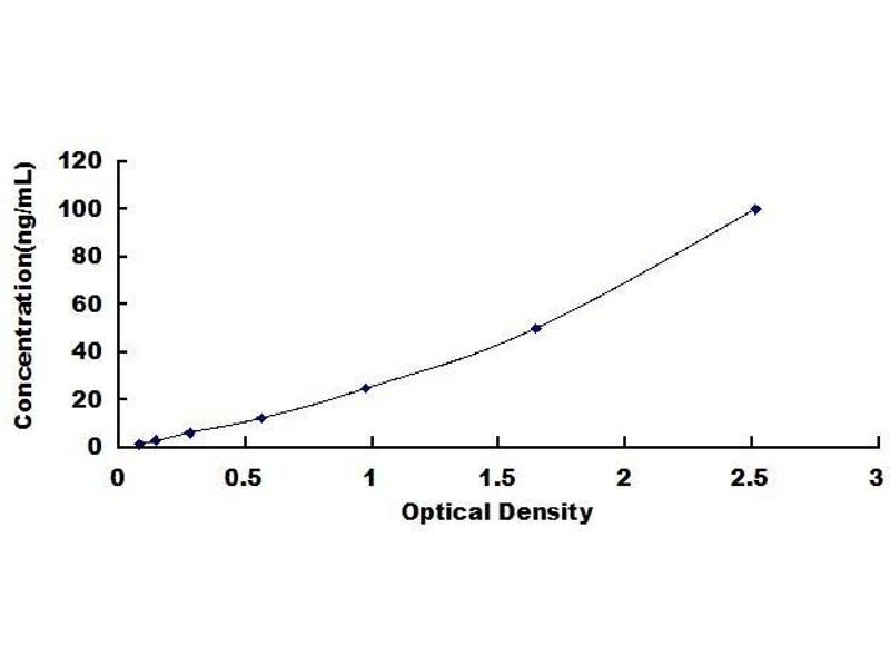 - Standard - Reconstitute the Standard with 1.0 mL of Standard Diluent, keep for 10 minutes at room temperature, shake gently (not to foam). The concentration of the standard in the stock solution is 800 ng/mL. Firstly dilute the stock solution to 100 ng/mL and the diluted standard serves as the highest standard (100 ng/mL). Then prepare 7 tubes containing 0.5 mL Standard Diluent and use the diluted standard to produce a double dilution series. Mix each tube thoroughly before the next transfer. Set up 7 points of diluted standard such as 100 ng/mL, 50 ng/mL, 25 ng/mL, 12.5 ng/mL, 6.25 ng/mL, 3.12 ng/mL, 1.56 ng/mL, and the last microcentrifuge tube with Standard Diluent is the blank as 0 ng/mL.
