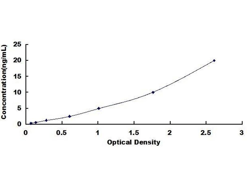 - Standard - Reconstitute the Standard with 1.0 mL of Standard Diluent, kept for 10 minutes at room temperature, shake gently (not to foam). The concentration of the standard in the stock solution is 80 ng/mL. First dilute the stock solution to 20 ng/mL and the diluted standard serves as the highest standard (20ng/mL). Then prepare 7 tubes containing 0.5mL Standard Diluent and use the diluted standard to produce a double dilution series. Mix each tube thoroughly before the next transfer. Set up 7 points of diluted standard such as 20ng/mL, 10ng/mL, 5ng/mL, 2.5ng/mL, 1.25ng/mL, 0.625ng/mL, 0.312ng/mL, and the last tube with Standard Diluent is the blank as 0ng/mL.