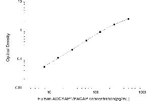 Intra-assay Precision (Precision within an assay): 3 samples with low, mid range and high level Human ADCYAP1/PACAP were tested 20 times on one plate, respectively. Inter-assay Precision (Precision between assays): 3 samples with low, mid range and high level Human ADCYAP1/PACAP were tested on 3 different plates, 20 replicates in each plate. Both intra-CV and inter-CV are < 10 %.