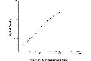 Intra-assay Precision (Precision within an assay): 3 samples with low, mid range and high level Human Bcl-10 were tested 20 times on one plate, respectively. Inter-assay Precision (Precision between assays): 3 samples with low, mid range and high level Human Bcl-10 were tested on 3 different plates, 20 replicates in each plate. Both intra-CV and inter-CV are < 10 %.