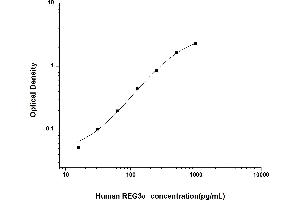 Intra-assay Precision (Precision within an assay): 3 samples with low, mid range and high level Human REG3α were tested 20 times on one plate, respectively. Inter-assay Precision (Precision between assays): 3 samples with low, mid range and high level Human REG3α were tested on 3 different plates, 20 replicates in each plate. Both intra-CV and inter-CV are < 10 %.