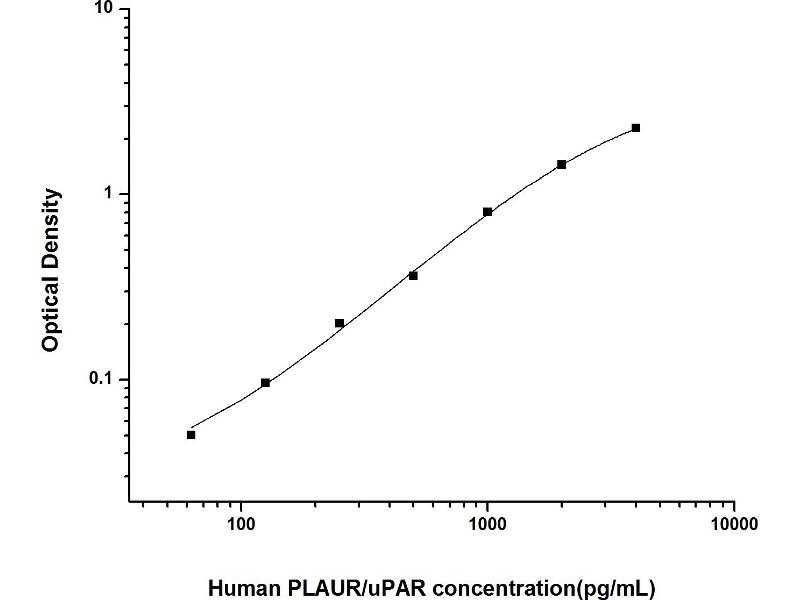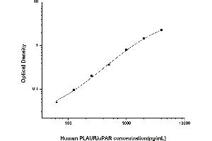 Intra-assay Precision (Precision within an assay): 3 samples with low, mid range and high level Human PLAUR/uPAR were tested 20 times on one plate, respectively. Inter-assay Precision (Precision between assays): 3 samples with low, mid range and high level Human PLAUR/uPAR were tested on 3 different plates, 20 replicates in each plate. Both intra-CV and inter-CV are < 10 %.