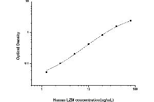 Intra-assay Precision (Precision within an assay): 3 samples with low, mid range and high level Human LZM were tested 20 times on one plate, respectively. Inter-assay Precision (Precision between assays): 3 samples with low, mid range and high level Human LZM were tested on 3 different plates, 20 replicates in each plate. Both intra-CV and inter-CV are < 10 %.