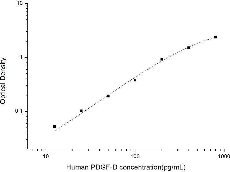 Intra-assay Precision (Precision within an assay): 3 samples with low, mid range and high level Human PDGF-D were tested 20 times on one plate, respectively.