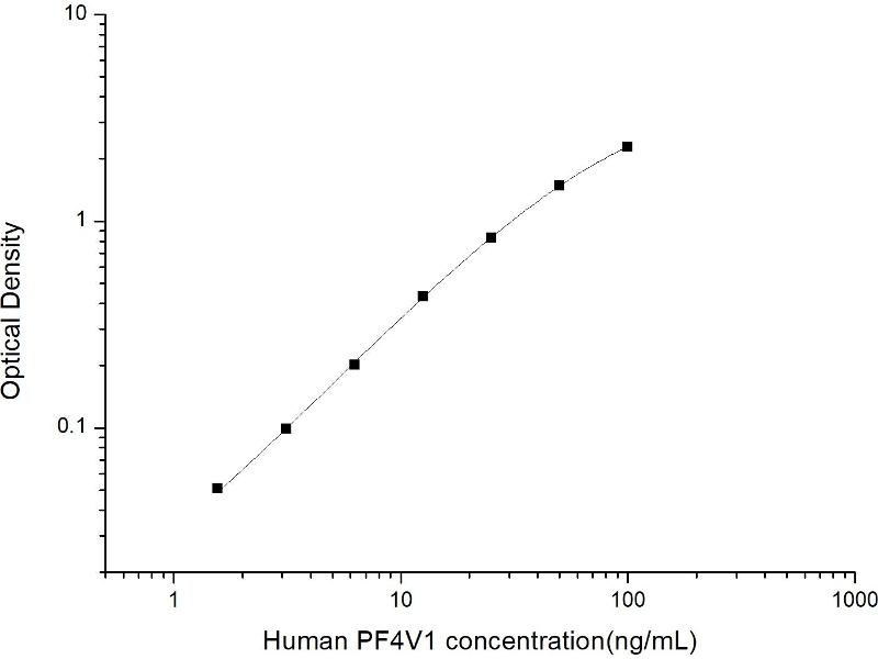 Intra-assay Precision (Precision within an assay): 3 samples with low, mid range and high level Human PF4V1 were tested 20 times on one plate, respectively. Inter-assay Precision (Precision between assays): 3 samples with low, mid range and high level Human PF4V1 were tested on 3 different plates, 20 replicates in each plate. Both intra-CV and inter-CV are < 10 %.