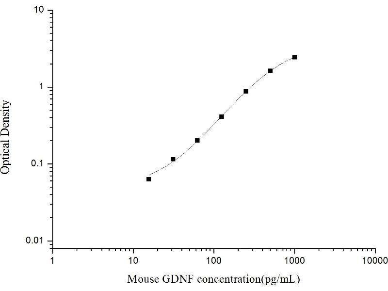 Intra-assay Precision (Precision within an assay): 3 samples with low, mid range and high level Mouse GDNF were tested 20 times on one plate, respectively. Inter-assay Precision (Precision between assays): 3 samples with low, mid range and high level Mouse GDNF were tested on 3 different plates, 20 replicates in each plate. Both intra-CV and inter-CV are < 10 %.