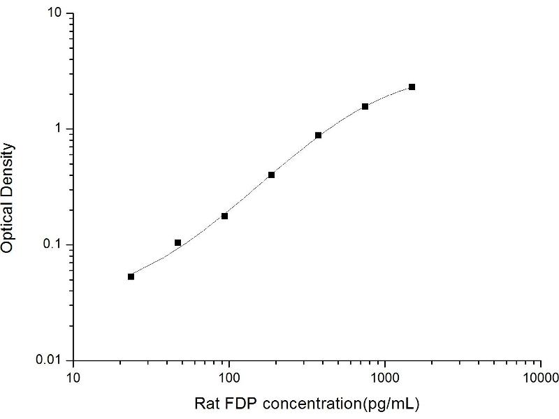 Intra-assay Precision (Precision within an assay): 3 samples with low, mid range and high level Rat FDP were tested 20 times on one plate, respectively. Inter-assay Precision (Precision between assays): 3 samples with low, mid range and high level Rat FDP were tested on 3 different plates, 20 replicates in each plate. Both intra-CV and inter-CV are < 10 %.