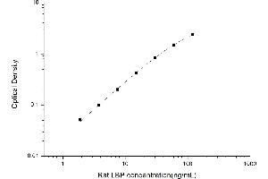 Inter-assay Precision (Precision between assays): 3 samples with low, mid range and high level Rat LBP were tested on 3 different plates, 20 replicates in each plate.