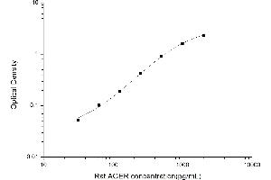 Intra-assay Precision (Precision within an assay): 3 samples with low, mid range and high level Rat AGER were tested 20 times on one plate, respectively. Inter-assay Precision (Precision between assays): 3 samples with low, mid range and high level Rat AGER were tested on 3 different plates, 20 replicates in each plate. Both intra-CV and inter-CV are < 10 %.