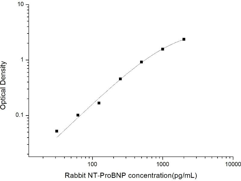 Inter-assay Precision (Precision between assays): 3 samples with low, mid range and high level Rabbit NT-proBNP were tested on 3 different plates, 20 replicates in each plate.
