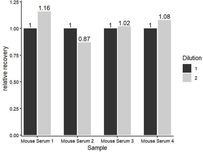 - If a lysis buffer is used to prepare tissue homogenates or cell culture supernatant, there is a possibility of causing a deviation due to the introduced chemical substance. The recommended dilution factor is for reference only.
