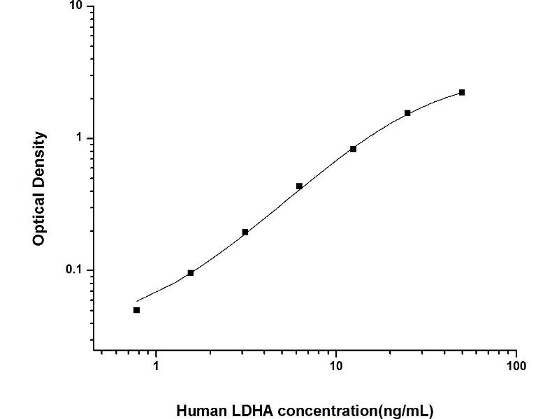 Intra-assay Precision (Precision within an assay): 3 samples with low, mid range and high level Human LDHA were tested 20 times on one plate, respectively. Inter-assay Precision (Precision between assays): 3 samples with low, mid range and high level Human LDHA were tested on 3 different plates, 20 replicates in each plate. Both intra-CV and inter-CV are < 10 %.
