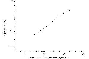 Intra-assay Precision (Precision within an assay): 3 samples with low, mid range and high level Mouse Aβ1-42 were tested 20 times on one plate, respectively.