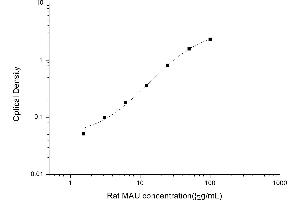 Intra-assay Precision (Precision within an assay): 3 samples with low, mid range and high level Rat MAU were tested 20 times on one plate, respectively. Inter-assay Precision (Precision between assays): 3 samples with low, mid range and high level Rat MAU were tested on 3 different plates, 20 replicates in each plate. Both intra-CV and inter-CV are < 10 %.