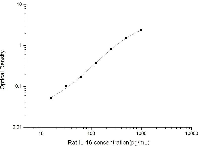 Intra-assay Precision (Precision within an assay): 3 samples with low, mid range and high level Rat IL-16 were tested 20 times on one plate, respectively. Inter-assay Precision (Precision between assays): 3 samples with low, mid range and high level Rat IL-16 were tested on 3 different plates, 20 replicates in each plate. Both intra-CV and inter-CV are < 10 %.