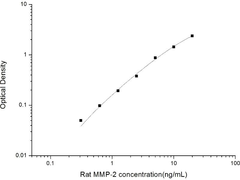 Intra-assay Precision (Precision within an assay): 3 samples with low, mid range and high level Rat MMP-2 were tested 20 times on one plate, respectively. Inter-assay Precision (Precision between assays): 3 samples with low, mid range and high level Rat MMP-2 were tested on 3 different plates, 20 replicates in each plate. Both intra-CV and inter-CV are < 10 %.