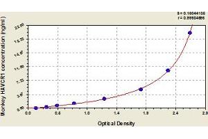 This assay has high sensitivity and excellent specificity for detection of monkey HAVCR1. No significant cross-reactivity or interference between monkey HAVCR1 and analogues was observed. Note: Limited by current skills and knowledge, it is impossible for us to complete the cross-reactivity detection between monkey HAVCR1 and all the analogues, therefore, cross reaction may still exist.