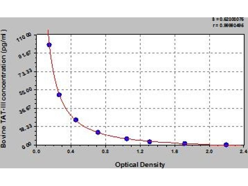 - This assay has high sensitivity and excellent specificity for detection of bovine TAT-III. No significant cross-reactivity or interference between bovine TAT-III and analogues was observed. Note: Limited by current skills and knowledge, it is impossible for us to complete the cross-reactivity detection between bovine TAT-III and all the analogues, therefore, cross reaction may still exist.