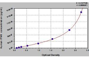 - This assay has high sensitivity and excellent specificity for detection of human IFNK. No significant cross-reactivity or interference between human IFNK and analogues was observed. Note: Limited by current skills and knowledge, it is impossible for us to complete the cross-reactivity detection between human IFNK and all the analogues, therefore, cross reaction may still exist.