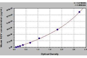 - This assay has high sensitivity and excellent specificity for detection of mouse NOV. No significant cross-reactivity or interference between mouse NOV and analogues was observed. Note: Limited by current skills and knowledge, it is impossible for us to complete the cross-reactivity detection between mouse NOV and all the analogues, therefore, cross reaction may still exist.