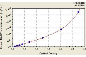 This assay has high sensitivity and excellent specificity for detection of human MASP1. No significant cross-reactivity or interference between human MASP1 and analogues was observed. Note: Limited by current skills and knowledge, it is impossible for us to complete the cross-reactivity detection between human MASP1 and all the analogues, therefore, cross reaction may still exist.