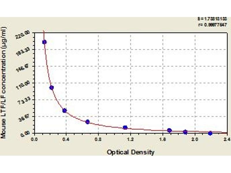 - This assay has high sensitivity and excellent specificity for detection of mouse LTF/LF. No significant cross-reactivity or interference between mouse LTF/LF and analogues was observed. Note: Limited by current skills and knowledge, it is impossible for us to complete the cross-reactivity detection between mouse LTF/LF and all the analogues, therefore, cross reaction may still exist.