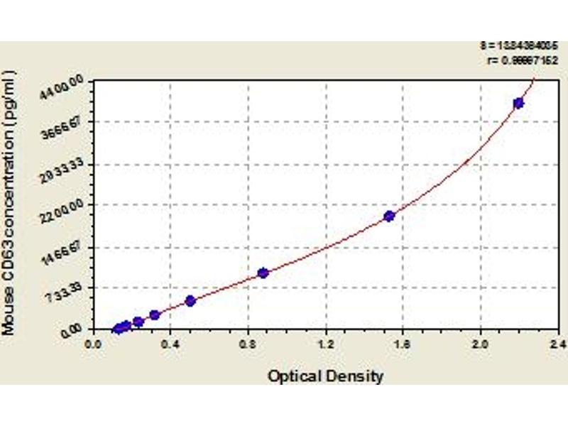 This assay has high sensitivity and excellent specificity for detection of mouse CD63. No significant cross-reactivity or interference between mouse CD63 and analogues was observed. Note: Limited by current skills and knowledge, it is impossible for us to complete the cross-reactivity detection between mouse CD63 and all the analogues, therefore, cross reaction may still exist.
