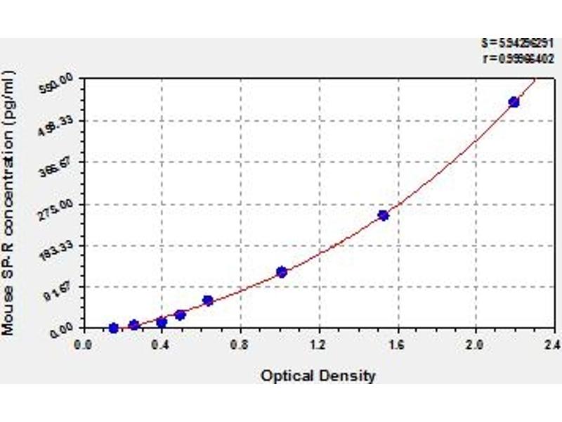 - This assay has high sensitivity and excellent specificity for detection of mouse SP-R. No significant cross-reactivity or interference between mouse SP-R and analogues was observed. Note: Limited by current skills and knowledge, it is impossible for us to complete the cross-reactivity detection between mouse SP-R and all the analogues, therefore, cross reaction may still exist.
