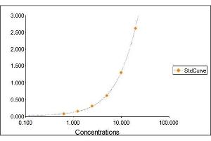 2. The Standards and the test sample(s) should be loaded into the ELISA wells as quickly as possible to avoid a shift in OD readings. Using a multichannel pipette would reduce this occurrence. Pipette 100 μL of Standard 0 (0.0 ng/mL) in duplicate Standard 1 (0.63 ng/mL) in duplicate Standard 2 (1.25 ng/mL) in duplicate Standard 3 (2.50 ng/mL) in duplicate Standard 4 (5 ng/mL) in duplicate Standard 5 (10 ng/mL) in duplicate Standard 6 (20 ng/mL) in duplicate