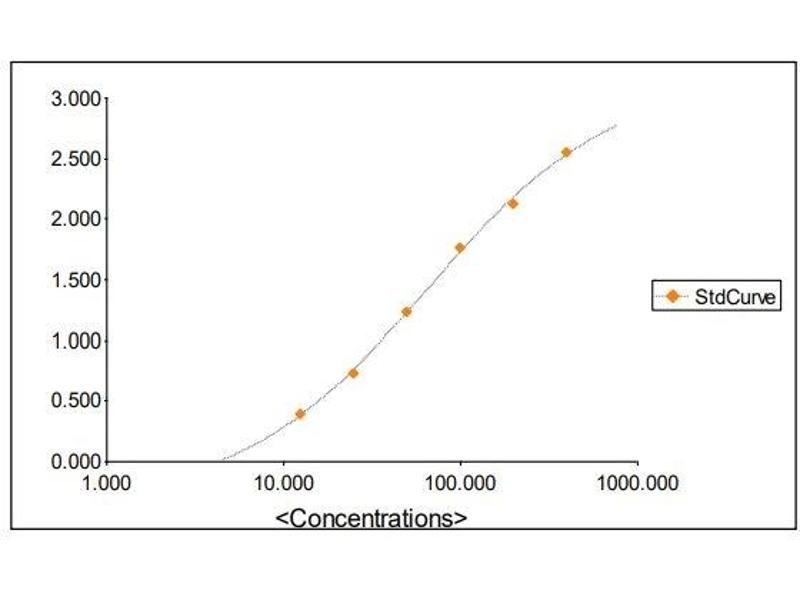 2. The Standards and the test sample(s) should be loaded into the ELISA wells as quickly as possible to avoid a shift in OD readings. Using a multichannel pipette would reduce this occurrence. Pipette 100 μL of Standard 0 (0.0 ng/mL) in duplicate Standard 1 (12.5 ng/mL) in duplicate Standard 2 (25 ng/mL) in duplicate Standard 3 (50 ng/mL) in duplicate Standard 4 (100 ng/mL) in duplicate Standard 5 (200 ng/mL) in duplicate Standard 6 (400 ng/mL) in duplicate