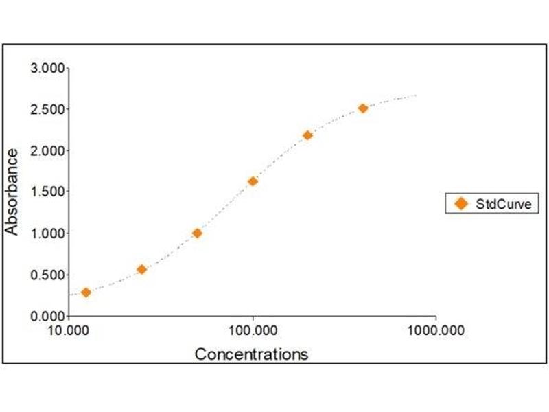 2. The Standards and the test sample(s) should be loaded into the ELISA wells as quickly as possible to avoid a shift in OD readings. Using a multichannel pipette would reduce this occurrence. Pipette 100 μL of Standard 0 (0.0 ng/mL) in duplicate Standard 1 (12.50 ng/mL) in duplicate Standard 2 (25 ng/mL) in duplicate Standard 3 (50 ng/mL) in duplicate Standard 4 (100 ng/mL) in duplicate Standard 5 (200 ng/mL) in duplicate Standard 6 (400 ng/mL) in duplicate