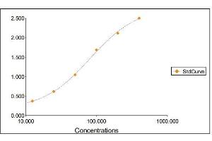 2. The Standards and the test sample(s) should be loaded into the ELISA wells as quickly as possible to avoid a shift in OD readings. Using a multichannel pipette would reduce this occurrence. Pipette 100 μL of Standard 0 (0.0 ng/mL) in duplicate Standard 1 (12.50 ng/mL) in duplicate Standard 2 (25 ng/mL) in duplicate Standard 3 (50 ng/mL) in duplicate Standard 4 (100 ng/mL) in duplicate Standard 5 (200 ng/mL) in duplicate Standard 6 (400 ng/mL) in duplicate