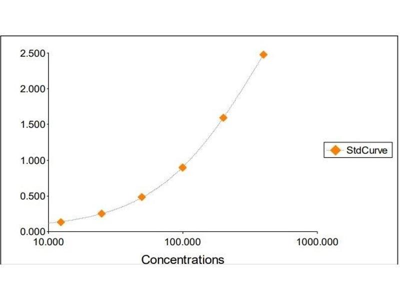2. The Standards and the test sample(s) should be loaded into the ELISA wells as quickly as possible to avoid a shift in OD readings. Using a multichannel pipette would reduce this occurrence. Pipette 100 μL of Standard 0 (0.0 ng/mL) in duplicate Standard 1 (12.50 ng/mL) in duplicate Standard 2 (25 ng/mL) in duplicate Standard 3 (50 ng/mL) in duplicate Standard 4 (100 ng/mL) in duplicate Standard 5 (200 ng/mL) in duplicate Standard 6 (400 ng/mL) in duplicate