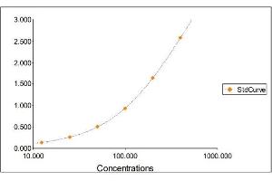 2. The Standards and the test sample(s) should be loaded into the ELISA wells as quickly as possible to avoid a shift in OD readings. Using a multichannel pipette would reduce this occurrence. Pipette 100 μL of Standard 0 (0.0 ng/mL) in duplicate Standard 1 (12.50 ng/mL) in duplicate Standard 2 (25 ng/mL) in duplicate Standard 3 (50 ng/mL) in duplicate Standard 4 (100 ng/mL) in duplicate Standard 5 (200 ng/mL) in duplicate Standard 6 (400 ng/mL) in duplicate