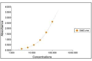 2. The Standards and the test sample(s) should be loaded into the ELISA wells as quickly as possible to avoid a shift in OD readings. Using a multichannel pipette would reduce this occurrence. Pipette 100 μL of Standard 0 (0.0 ng/mL) in duplicate Standard 1 (3.13 ng/mL) in duplicate Standard 2 (6.25 ng/mL) in duplicate Standard 3 (12.50 ng/mL) in duplicate Standard 4 (25 ng/mL) in duplicate Standard 5 (50 ng/mL) in duplicate Standard 6 (100 ng/mL) in duplicate