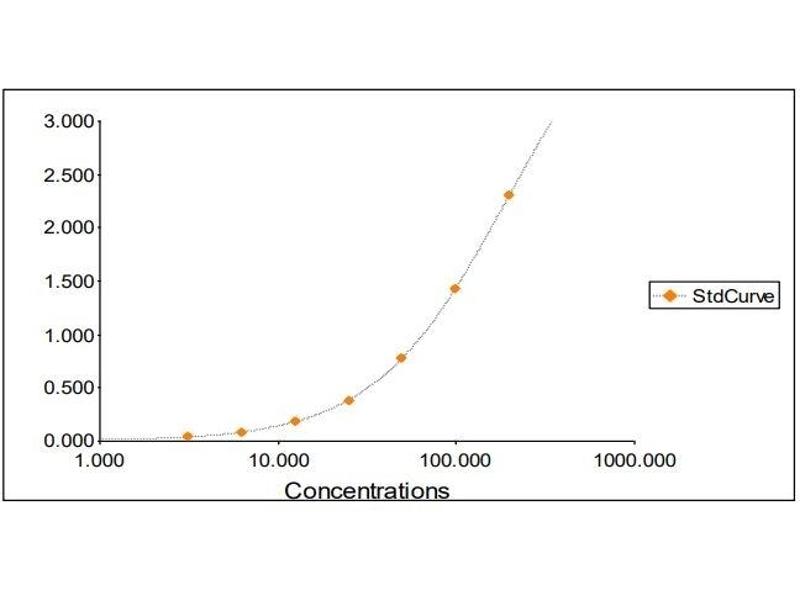 2. The Standards and the test sample(s) should be loaded into the ELISA wells as quickly as possible to avoid a shift in OD readings. Using a multichannel pipette would reduce this occurrence. Pipette 100 μL of Standard 0 (0.0 ng/mL) in duplicate Standard 1 (3.13 ng/mL) in duplicate Standard 2 (6.25 ng/mL) in duplicate Standard 3 (12.50 ng/mL) in duplicate Standard 4 (25 ng/mL) in duplicate Standard 5 (50 ng/mL) in duplicate Standard 6 (100 ng/mL) in duplicate Standard 7 (200 ng/mL) in duplicate