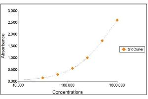 2. The Standards and the test sample(s) should be loaded into the ELISA wells as quickly as possible to avoid a shift in OD readings. Using a multichannel pipette would reduce this occurrence. Pipette 100 μL of Standard 0 (0.0 ng/mL) in duplicate Standard 1 (31.25 ng/mL) in duplicate Standard 2 (62.50 ng/mL) in duplicate Standard 3 (125 ng/mL) in duplicate Standard 4 (250 ng/mL) in duplicate Standard 5 (500 ng/mL) in duplicate Standard 6 (1000 ng/mL) in duplicate