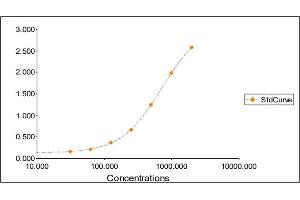 2. The Standards and the test sample(s) should be loaded into the ELISA wells as quickly as possible to avoid a shift in OD readings. Using a multichannel pipette would reduce this occurrence. Pipette 100 μL of Standard 0 (0.0 ng/mL) in duplicate Standard 1 (31.25 ng/mL) in duplicate Standard 2 (62.50 ng/mL) in duplicate Standard 3 (125 ng/mL) in duplicate Standard 4 (250 ng/mL) in duplicate Standard 5 (500 ng/mL) in duplicate Standard 6 (1000 ng/mL) in duplicate Standard 7 (2000 ng/mL) in duplicate