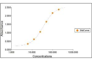 All samples and standards should be assayed in duplicates. 2. The Standards and the test sample(s) should be loaded into the ELISA wells as quickly as possible to avoid a shift in OD readings. Using a multichannel pipette would reduce this occurrence. Pipette 100 μL of Standard 0 (0.0 ng/mL) in duplicate Standard 1 (6.25 ng/mL) in duplicate Standard 2 (12.5 ng/mL) in duplicate Standard 3 (25 ng/mL) in duplicate Standard 4 (50 ng/mL) in duplicate Standard 5 (100 ng/mL) in duplicate Standard 6 (200 ng/mL) in duplicate 3. Pipette 100 μL of sample (in duplicate) into pre designated wells. 4. Incubate the micro titer plate at room temperature for thirty (30 ± 2) minutes. Keep plate covered and level during incubation. 5. Following incubation, aspirate the contents of the wells. 6. Completely fill each well with appropriately diluted Wash Solution and aspirate. Repeat three times, for a total of four washes. If washing manually: completely fill wells with wash buffer, invert the plate then pour/shake out the contents in a waste container. Follow this by sharply striking the wells on absorbent paper to remove residual buffer. Repeat 3 times for a total of four washes. 7. Pipette 100 μL of appropriately diluted Enzyme-Antibody Conjugate to each well. Incubate at room temperature for thirty (30 ± 2) minutes. Keep plate covered in the dark and level during incubation. 8. Wash and blot the wells as described in Steps 5/6. 9. Pipette 100 μL of TMB Substrate Solution into each well. 10. Incubate in the dark at room temperature for precisely ten (10) minutes. 11. After ten minutes, add 100 μL of Stop Solution to each well. 12. Determine the absorbance (450 nm) of the contents of each well within 30 minutes. Calibrate the plate reader to manufacturer’s specifications.