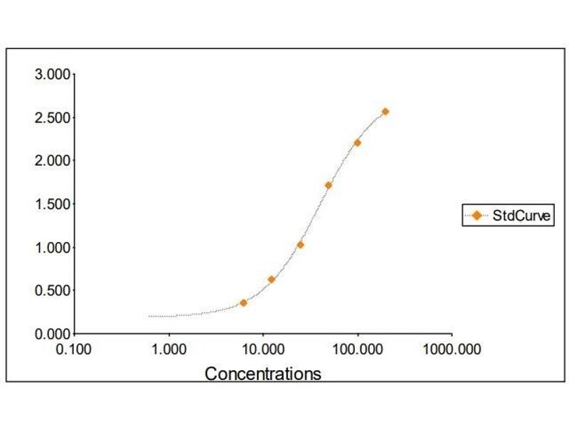 2. The Standards and the test sample(s) should be loaded into the ELISA wells as quickly as possible to avoid a shift in OD readings. Using a multichannel pipette would reduce this occurrence. Pipette 100 μL of Standard 0 (0.0 ng/mL) in duplicate Standard 1 (6.25 ng/mL) in duplicate Standard 2 (12.50 ng/mL) in duplicate Standard 3 (25 ng/mL) in duplicate Standard 4 (50 ng/mL) in duplicate Standard 5 (100 ng/mL) in duplicate Standard 6 (200 ng/mL) in duplicate